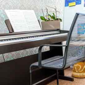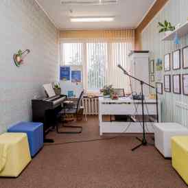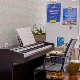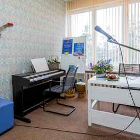 Школа, распахнувшая свои двери в 2014 году, представляет собой небольшое уютное пространство, оформленное в ненавязчивых светлых оттенках с акцентом на комфорт и лаконичность. Оригинальные элементы декора и яркая мебель создают особую атмосферу, в которой приятно не только заниматься, но и проводить время в компании увлеченных людей. Студия оснащена профессиональным музыкальным оборудованием и инструментами.